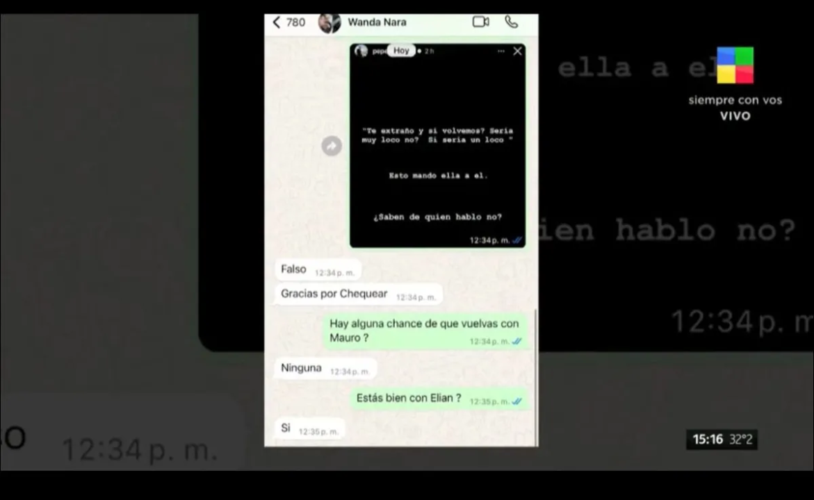 «Falso, gracias por chequear«, fue la respuesta que dio Wanda vía WhatsApp desmintiendo haber enviado ese mensaje luego de los festejos de año nuevo.