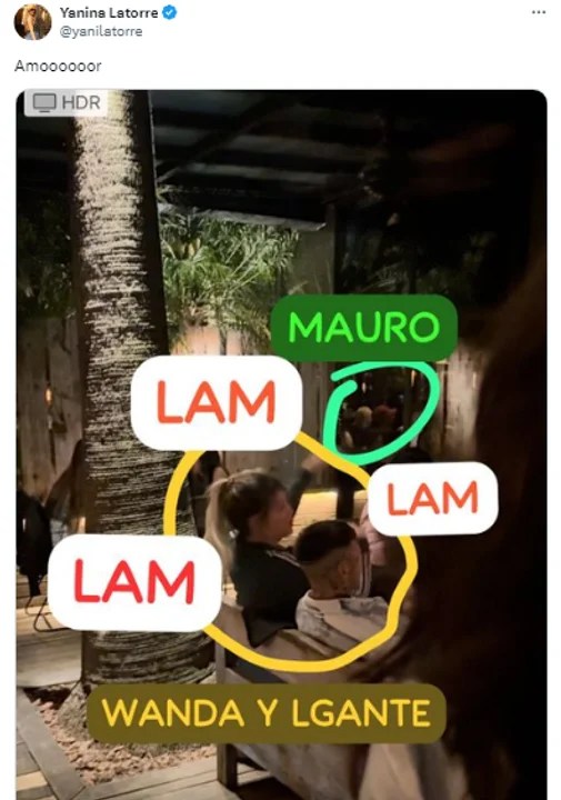 “Llego Wanda con Lgante a Gardiner. No la dejaron entrar porque no había mesa y una fan la dejó entrar a su mesa”, alertó De Brito.