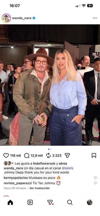 El posteo de Wanda Nara con Johnny Depp que superó los 200 mil likes en una hora