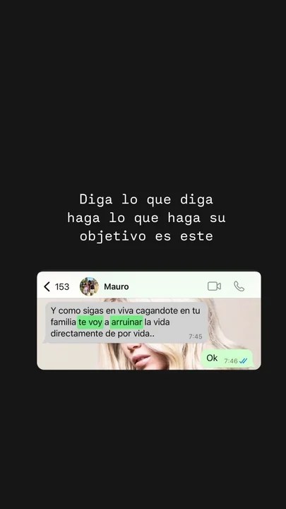La conductora agregó a sus historias una captura de pantalla con la leyenda: Diga lo que diga, haga lo que haga, su objetivo es este”. En la conversación que Wanda comparte con el delantero, Icardi le escribió: “Y como sigas en viva cag*ndoté en tu familia, te voy a arruinar la vida directamente, de por vida”.