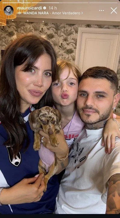 En las últimas horas, el futbolista publicó en su cuenta de Instagram una foto junto a Wanda e Isabella, la hija que ambos tienen, posando con la nueva mascota de la familia.