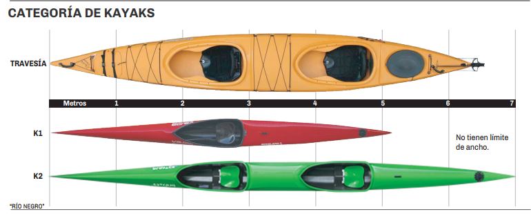 Tres tipos de embarcaciones tomarán parte de la prueba. Por un lado los tradicionales kayaks de competición K-1 y K-2 olímpicos y por el otro los botes travesía que irrumpieron para quedarse hace algunos años atrás en la Regata. Tienen capacidad para dos palistas, con una eslora máxima de 6,60 metros, una manga mínima de 0,59 metros y un peso mínimo de 30 kilos. Habrá 45 botes en esta edición.