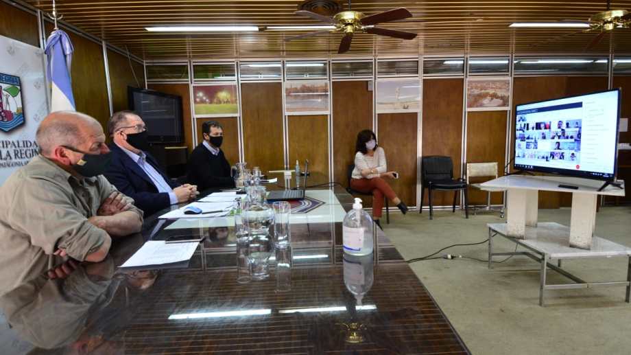 El anuncio del aporte se realizó mediante una videoconferencia encabezada por el Jefe de Gabinete de Ministros del gobierno nacional, Santiago Cafiero, acompañado por el ministro de Ambiente, Juan Cabandié, con el intendente de Regina, Marcelo Orazi, el titular del área de Ambiente y Desarrollo Sustentable del municipio, Hugo Curzel, y la participación de la secretaria de Ambiente de Río Negro, Dina Migani.