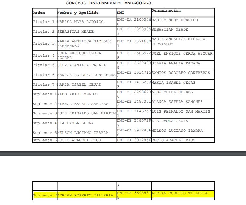 Un joven de Andacollo denunció que fue incorporado como candidato suplente a concejal de Cambiemos sin su consentimiento. Adrián Roberto Tillería, de 25 años, aseguró que se enteró hace dos días de que figuraba en el listado de la alianza nacional y que nunca había firmado la aceptación al cargo ni conoce al candidato a intendente de esa fuerza, Juan Aldo Méndez.