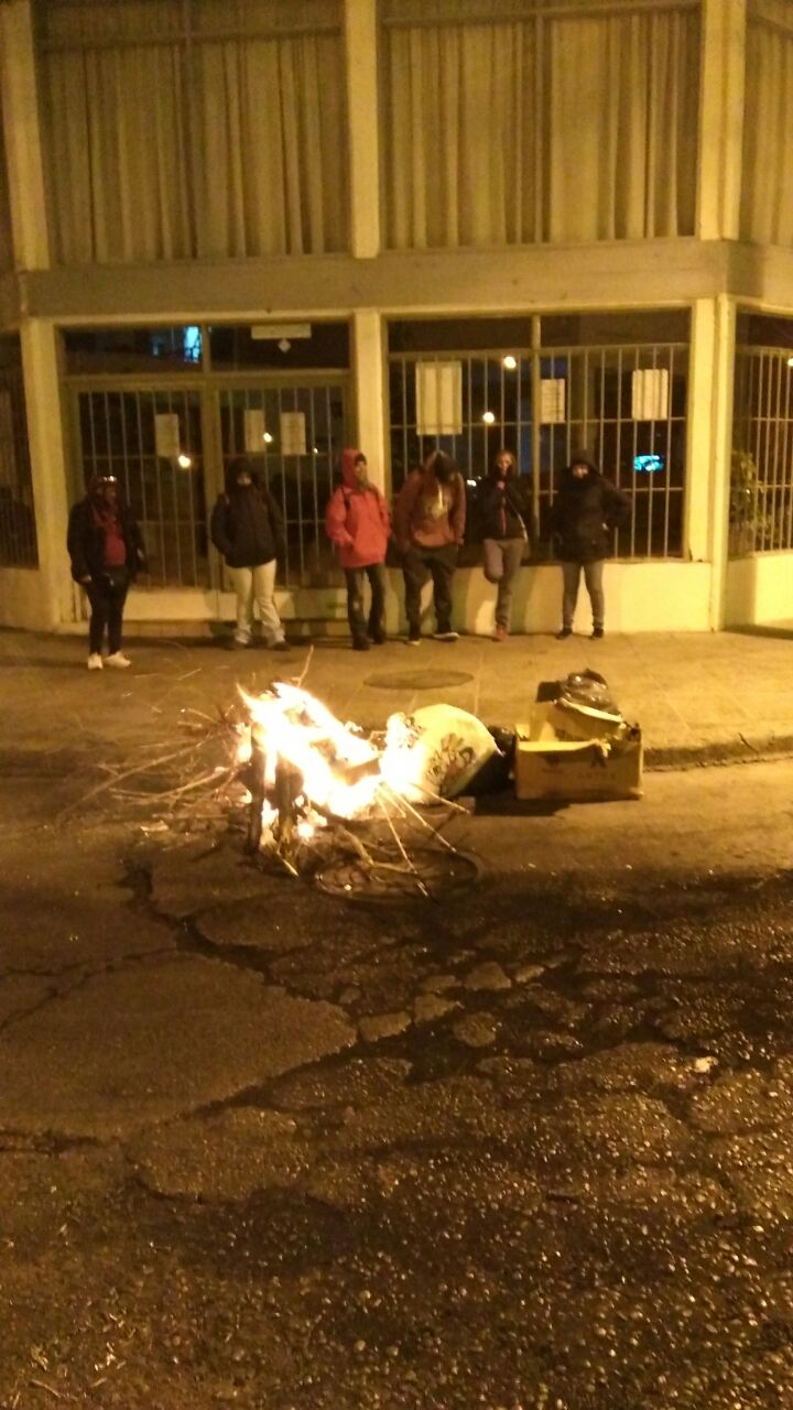 “En el marco de nuestro paro contra la rebaja salarial, vinimos acá a frenar el desvío de fondos para la campaña de (Alma) Chani Sapag que en gran parte se realiza desde este lugar casi escondido” explicó el secretario general de ATE, Carlos Quintriqueo.