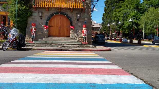 Bariloche Bariloche destaca la diversidad con sendas peatonales Hay dos cruces de peatones singulares con los colores de la bandera del orgullo LGTBIQ+ en el centro de Bariloche. Por Redacción