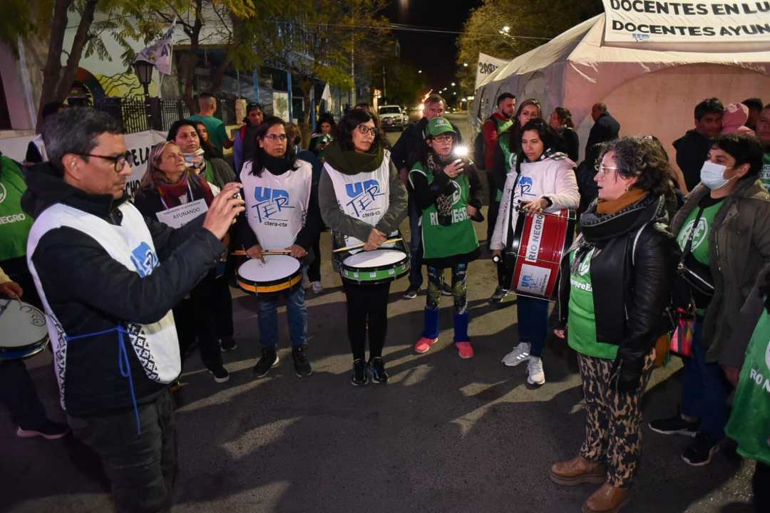 Una comitiva de la Asociación Trabajadores del Estado (ATE) encabezada por su secretaria general adjunta, Leticia Lapalma, visitó anoche la carpa de la dignidad instalada por los docentes en Viedma y participó de un plenario conjunto, explicitando su solidaridad y acompañamiento a las medidas de lucha que llevan adelante por salarios dignos.