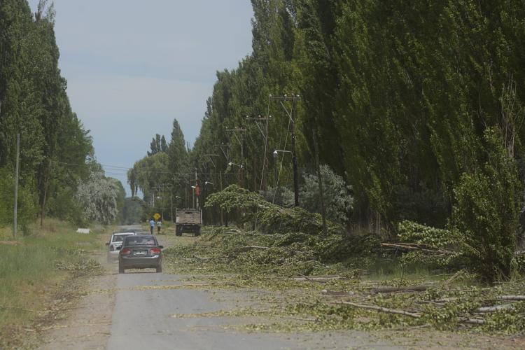 Álamos arrancados de raíz cayeron sobre tendidos eléctricos, afectaron transformadores e incluso cortaron caminos. Personal municipal trabajó allí para despejar los caminos mientras obreros de la empresa Edersa reponían la energía eléctrica en las áreas afectadas. El corte también afectó el servicio de agua potable.
