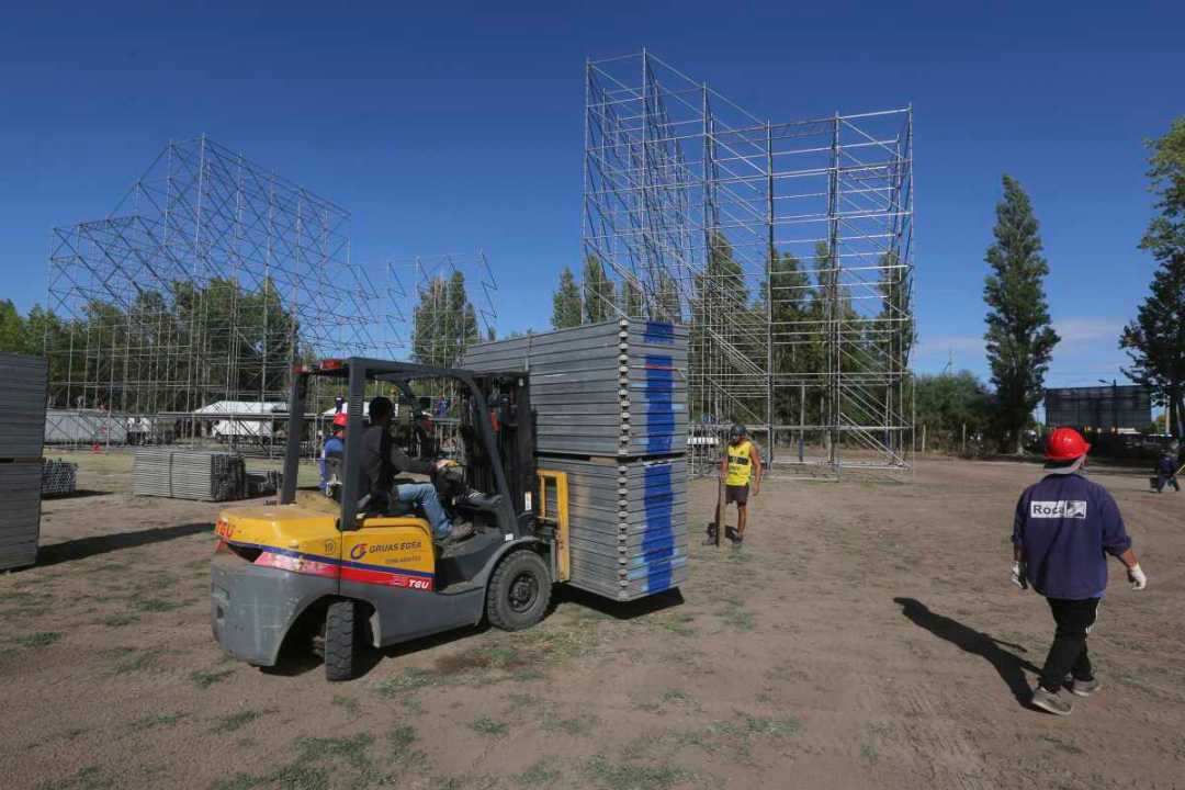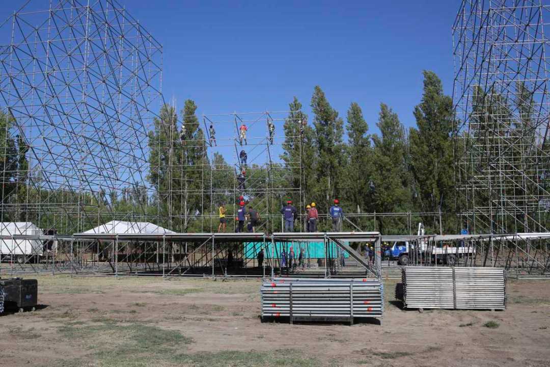 Hasta la estructura del escenario llegó con algo de retraso por aislamientos del personal que debía trasladarlo. Aún así, arribó y desde ayer avanzan en el armado para dar vida a La Delio Valdez, Los Palmeras, María Becerra, Juan Ingaramo, La Sole y otros artistas.