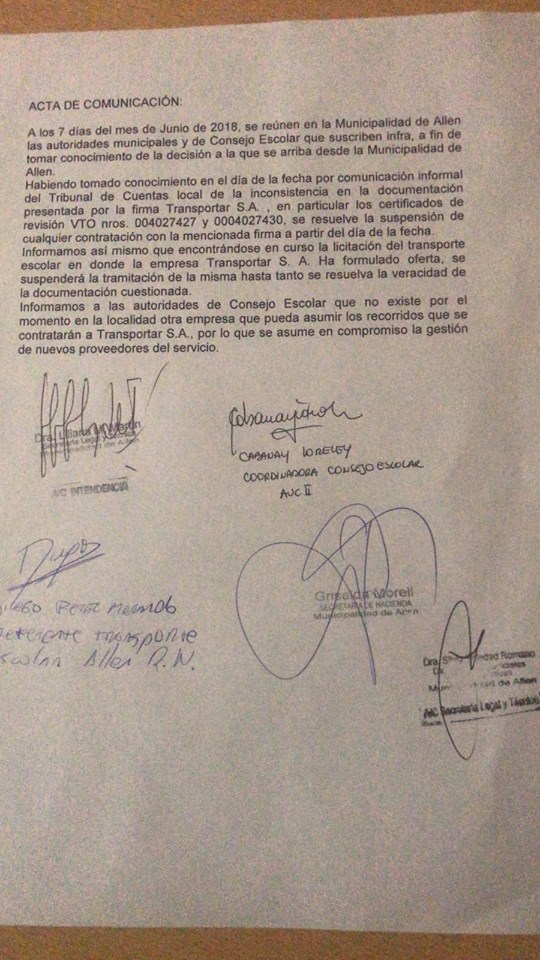 Desde hoy los estudiantes de Allen no tienen transporte escolar ya que el municipio suspendió el contrato con la firma Transportar S.A. por falta de documentación.