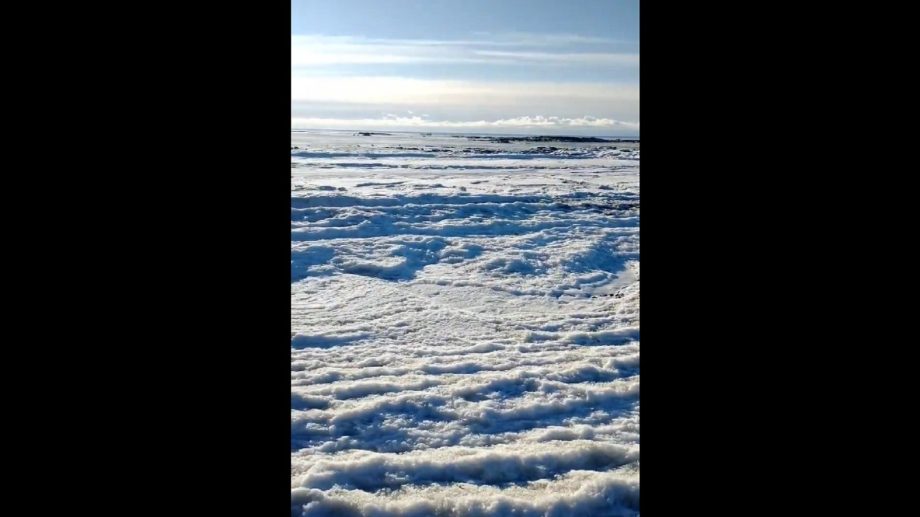 Una imagen inédita en Tierra del Fuego se viralizó ayer por las redes sociales. En un video se pudo ver la espuma del mar congelada en San Sebastián, al norte de Río Grande.