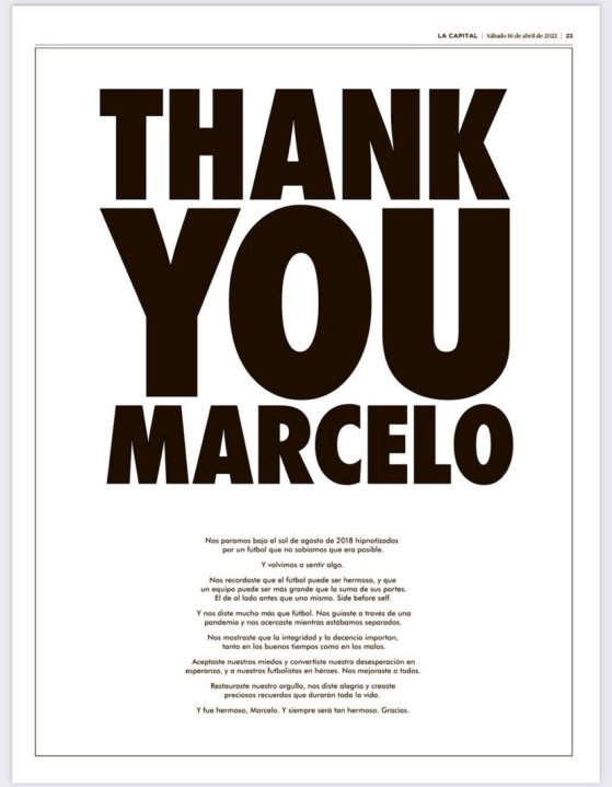 A través de una suerte de «solicitada» en el Diario La Capital de Rosario que apareció este sábado, un grupo de fanáticos de Leeds decidió homenajear a Marcelo Bielsa. «Thank you» (Gracias Marcelo) fue parte del mensaje que escribieron los hinchas.