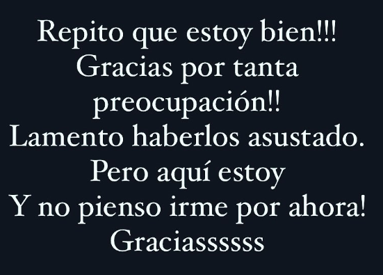 Horas más tarde, El Negro González Oro aclaró que lo que le sucedió fue «un ataque de angustia«: «Buen día, estoy bien. Fuerte ataque de angustia, sin ningún motivo. Pero aquí estoy tranquilo. Gracias».