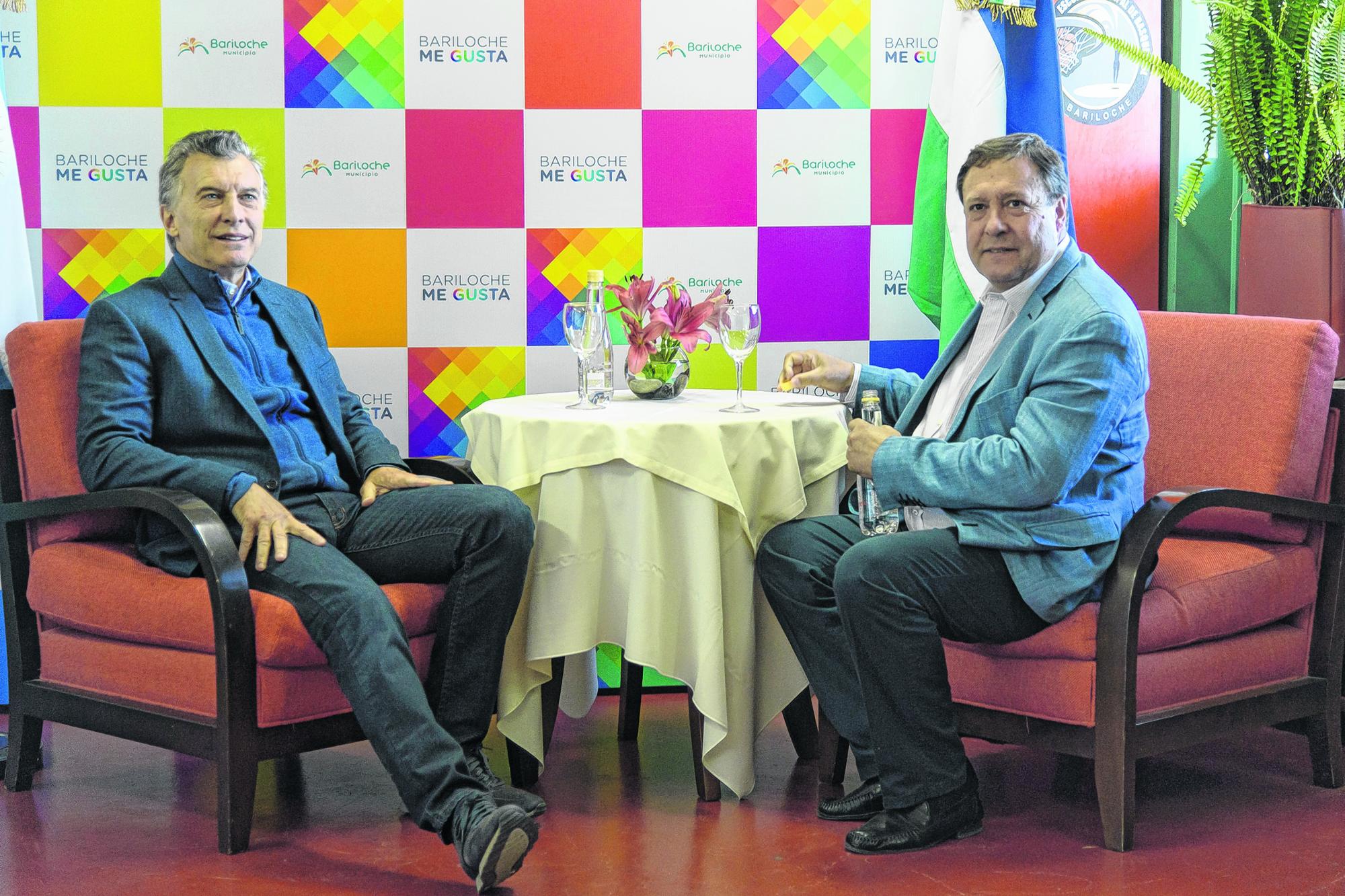 El presidente –que llegó a las inmediaciones del descampado donde se realizó el acto casi una hora antes– aterrizó a las 10:45 en el helicóptero de la Policía Federal en el patio del gimnasio municipal 3 donde lo esperaba Weretilneck. Allí, en el mismo escenario donde once meses atrás fue juzgado por su extradición el líder mapuche Facundo Jones Huala, estuvieron a solas 45 minutos en un improvisado living, en medio de un espacio vacío, con un banner detrás con el slogan de la ciudad “Bariloche me gusta”.