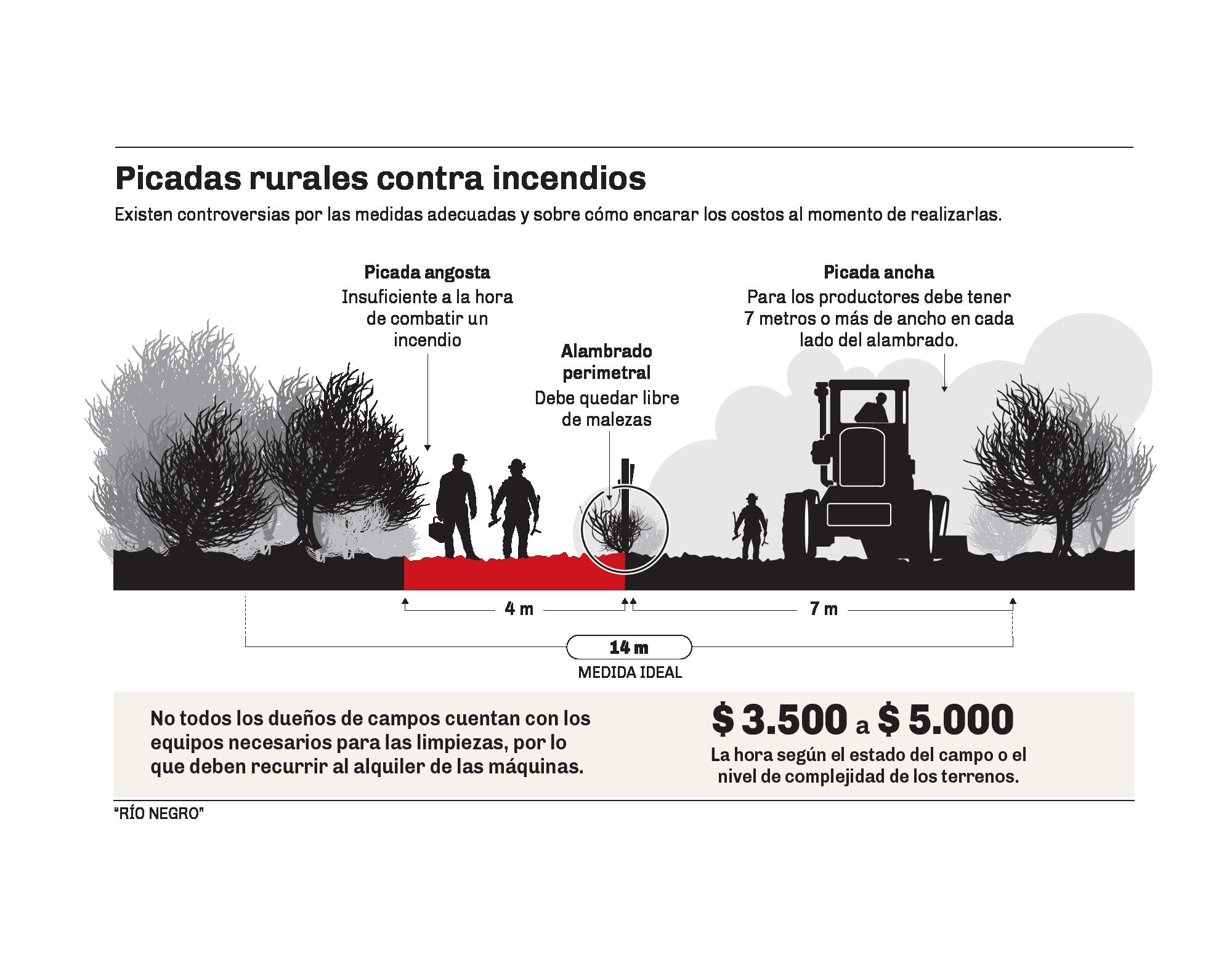 La nueva ley provincial sobre incendios exige a los propietarios de los campos mantener limpias y despejadas las picadas y alambrados perimetrales por las que se moverán los bomberos en casos de incendio, pero no define las medidas de las mismas.