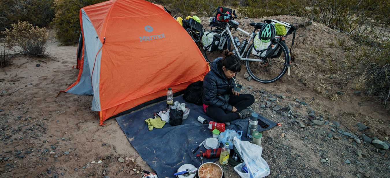Terminar el día de pedaleo significa un momento especial para nosotros, armamos nuestra casa-carpa, acomodamos el living (lona donada por nuestro amigo Mauro) y nos sentamos a tomar unos mates. Mientras preparamos la comida de la noche, observamos caer el atardecer entre las montañas y entre mate y mate nos damos cuenta que en este punto dejamos atrás la mítica Ruta 40 para ir a Salta por la Cuesta del Obispo.
