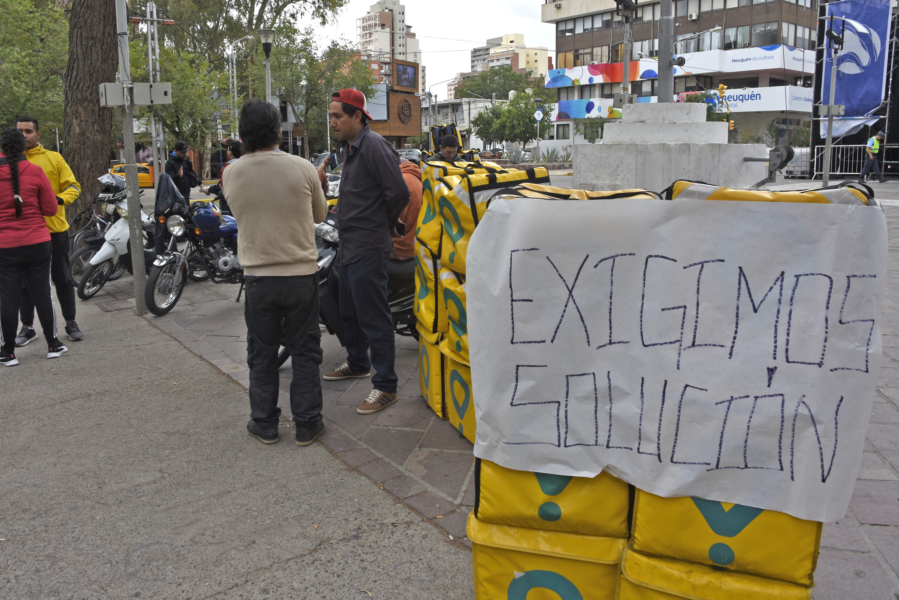 Más de 30 personas que realizan tareas para la aplicación Glovo, se autoconvocaron y realizaron un paro espontáneo en el centro de la ciudad de Neuquén.