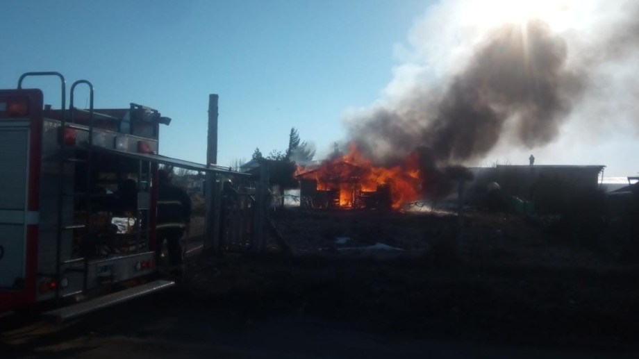 En unos pocos minutos, la casa ubicada en la calle Ñanculahuen al 200, en el barrio El Frutillar, a solo dos cuadras de la avenida Juan Herman, se consumió absolutamente por el fuego pese a la rápida intervención de los bomberos.