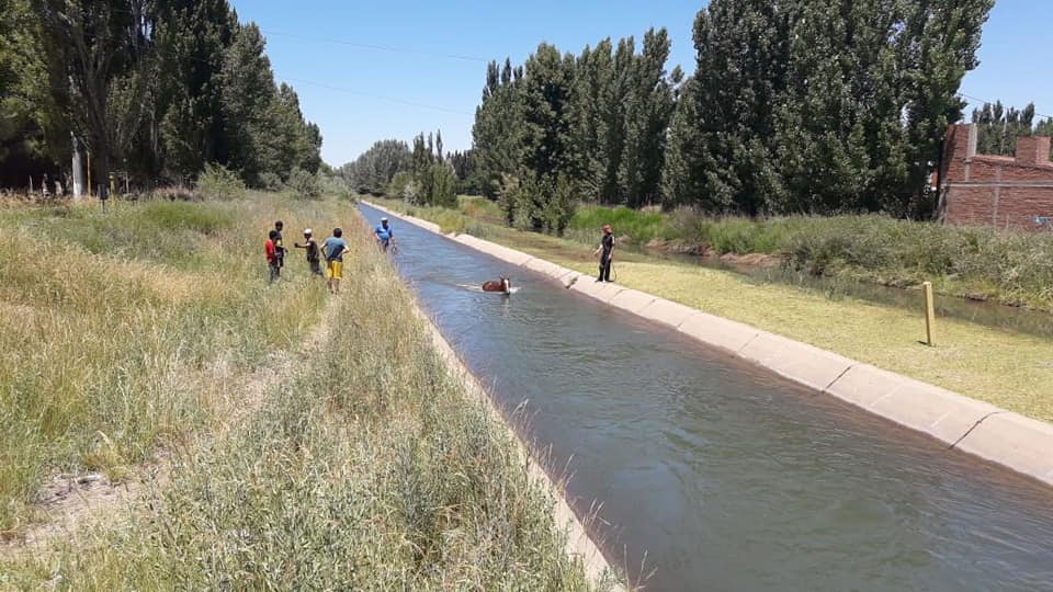 Un caballo se cayó al canal principal de riego a la altura de la Comisaría 49 de Vista Alegre Norte.