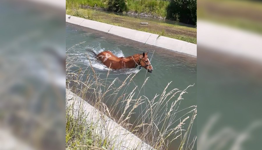 Un caballo se cayó al canal principal de riego a la altura de la Comisaría 49 de Vista Alegre Norte.