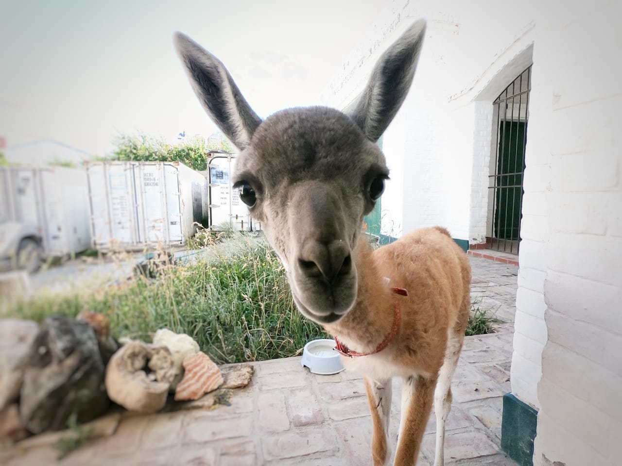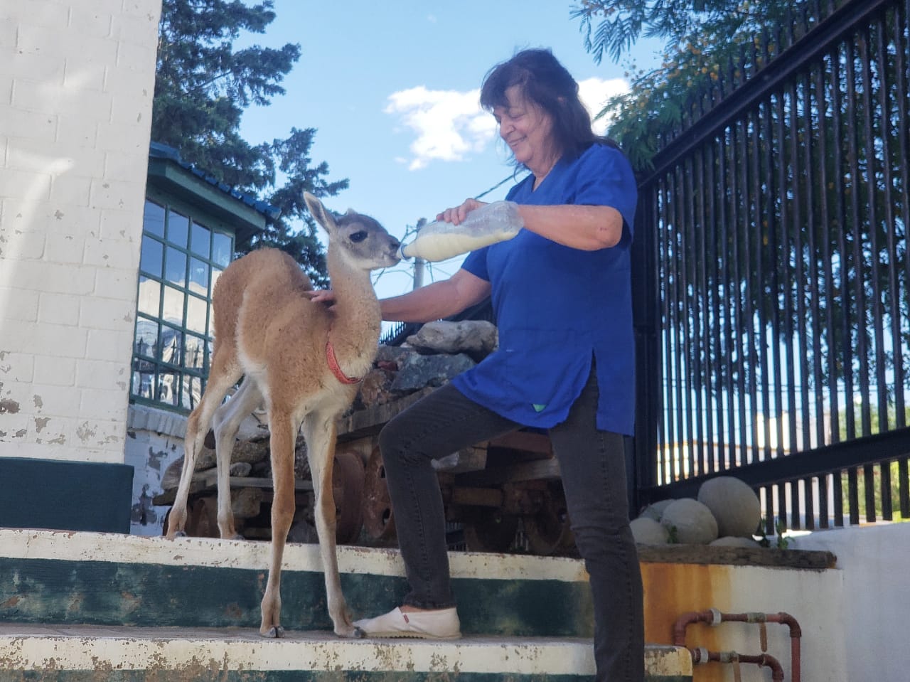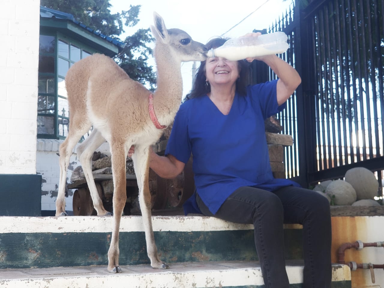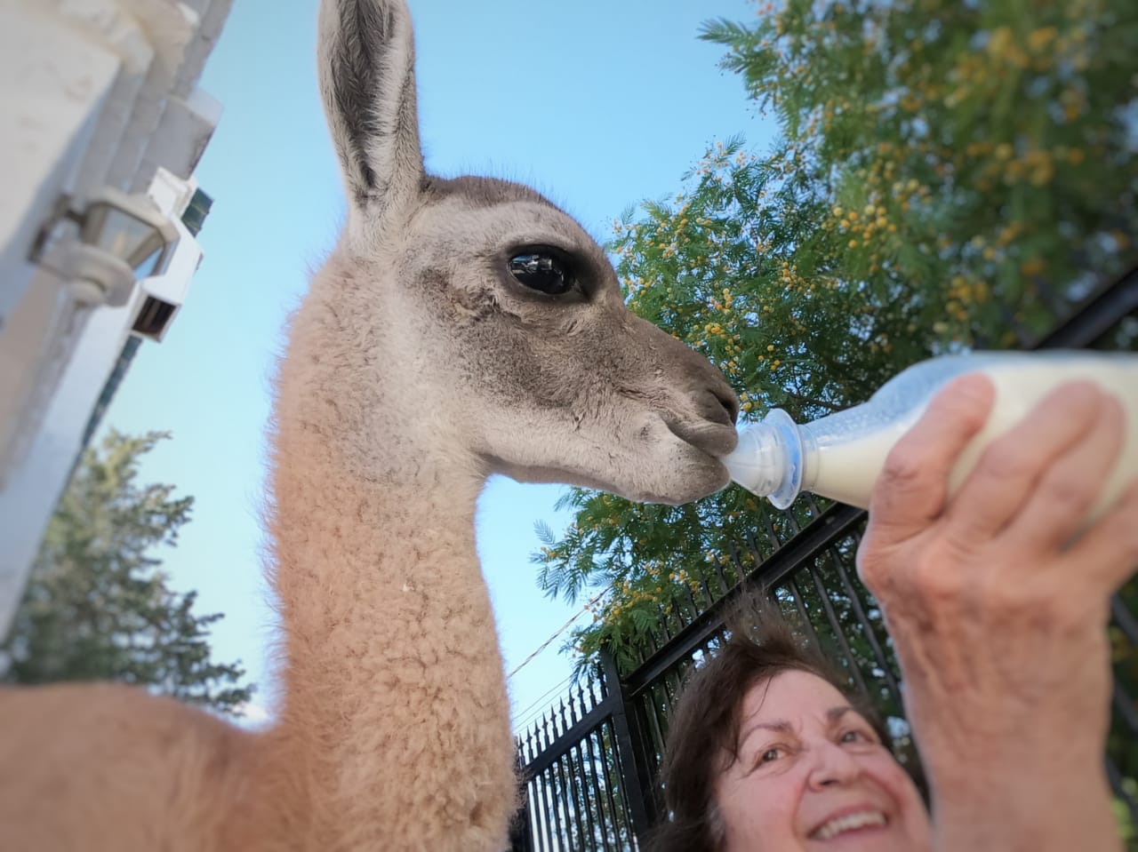 “Me sigue como si fuese la mamá” agregó la veterinaria, risueña. “Le doy leche de vaca, en una mamadera que improvisamos con una botella de gaseosa a la que le colocamos una tetina. Recién ahora empecé a probar para que empiece a incorporar sólidos. Porque los guanacos comen pasturas. Y conseguimos fardos frescos, aunque todavía le queda un tiempo largo de alimentación con mamadera” adelantó.