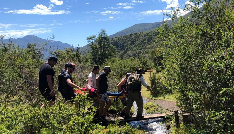 Una turista que caminaba por un sendero de baja complejidad en el Lago Paimún sufrió una inesperada caída. Por consecuencia de impacto padeció una fractura de peroné y fue trasladada al Hospital de Junín de los Andes, tras haber sido rescatada por dos Guardaparques y turistas que se ofrecieron voluntariamente para ayudar.