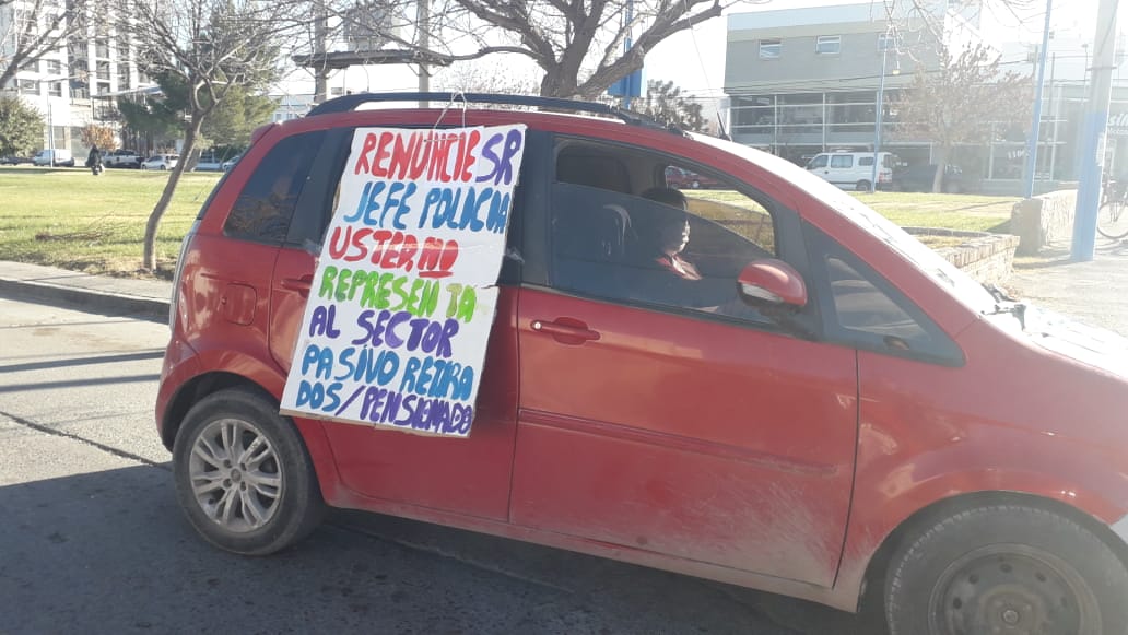 En Roca, una caravana conformada por un centenar de vehículos recorrió desde las 11 distintos puntos del centro, para manifestar su descontento con la actual Jefatura de la fuerza y con el Ministerio de Seguridad.