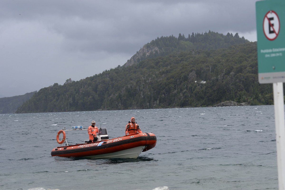 Prefectura Naval Argentina reinició el rastrillaje en el lago Moreno a las 6:30 y pasado el mediodía se retiraron los buzos por las malas condiciones meteorológicas. Continúan con embarcaciones y recorridos terrestres en la costa.