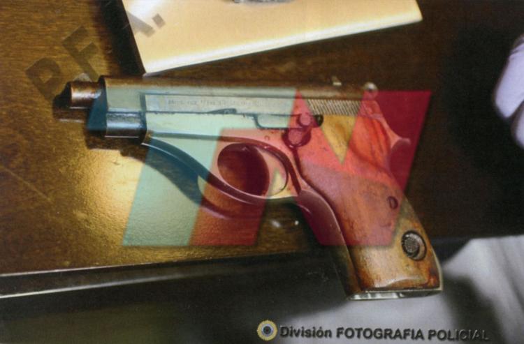 En otra imagen se ve el arma que mató a Nisman, una Bersa Thunder calibre 22, con una munición nueva, muy veloz, de punta hueca. El detalle que marca la querella es que encontró la numeración del arma, 35099, en contradicción con la versión del imputado Diego Lagomarsino -quien le prestó el revólver al fiscal-, que había dicho que el arma no estaba numerada.