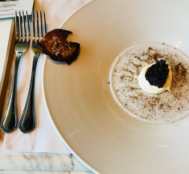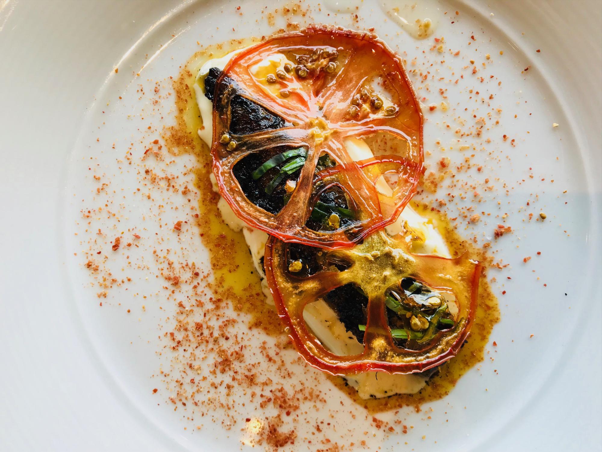 Con una vista increíble a los viñedos como si se tratase de La Toscana o de una película europea de los ochentas, con algo de sepia del contorno de los pastos de afuera y el verde de las plantas comenzamos un viaje de extremo placer por la cocina de este mendocino, egresado de la escuela Islas Malvinas como Técnico Superior en Gastronomía y Alta Cocina, sitio donde luego además fue docente. Trabajó desde muy chico en empresas de catering, hizo un paso fugaz en intenso por 1884, el restaurante de Mallmann en Mendoza, a los 22 creó su restaurante propio y durante los años venideros trabajó entre Europa, Argentina y Uruguay.