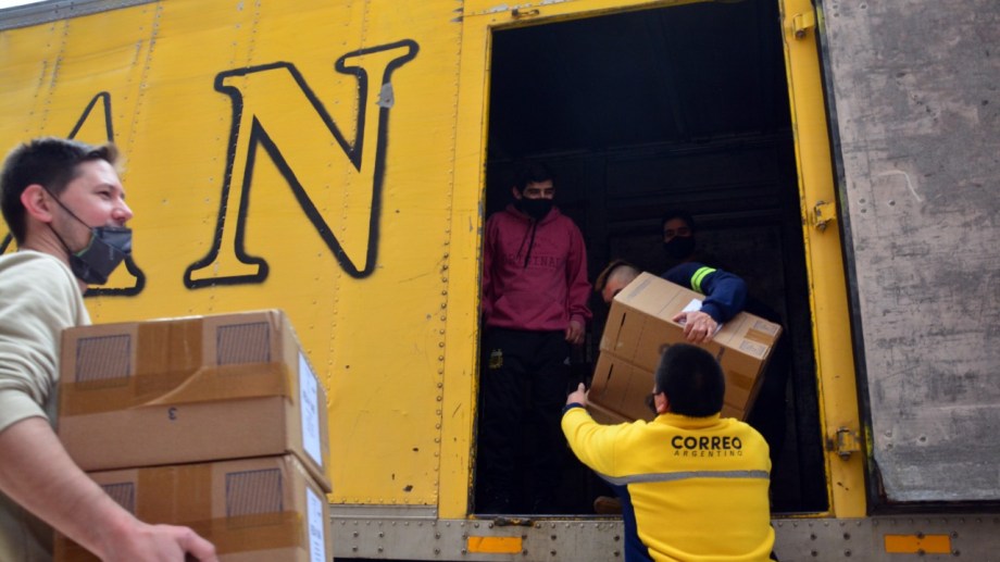 En dos camiones, desde Viedma, se puso en marcha esta mañana el operativo de reparto de las tradicionales urnas de cartón, con las boletas y los elementos para la votación.