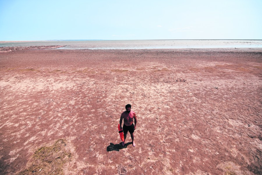 El lago de la represa de Casa de Piedra, sobre el río Colorado se achico cientos de metros. (Foto: Gonzalo Maldonado)