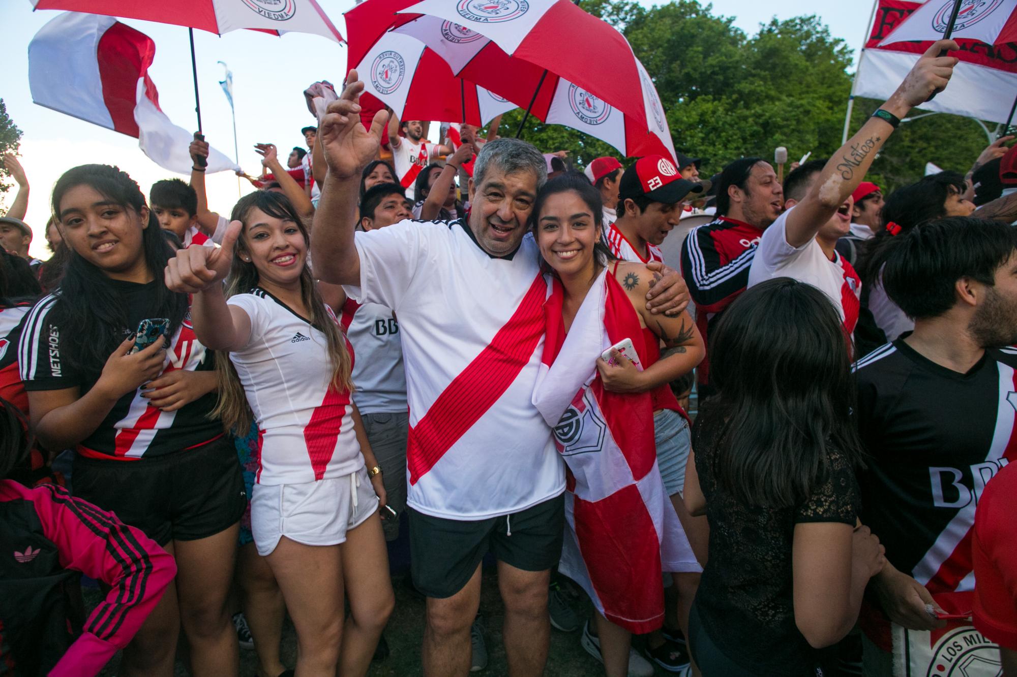 La fuente Pucará se tiñó de rojo y blanco en Viedma en un festejo histórico para River que se quedó con la Copa Libertadores de América tras el 3-1 frente a Boca en la súperfinal que se disputó en el Santiago Bernabéu en España.