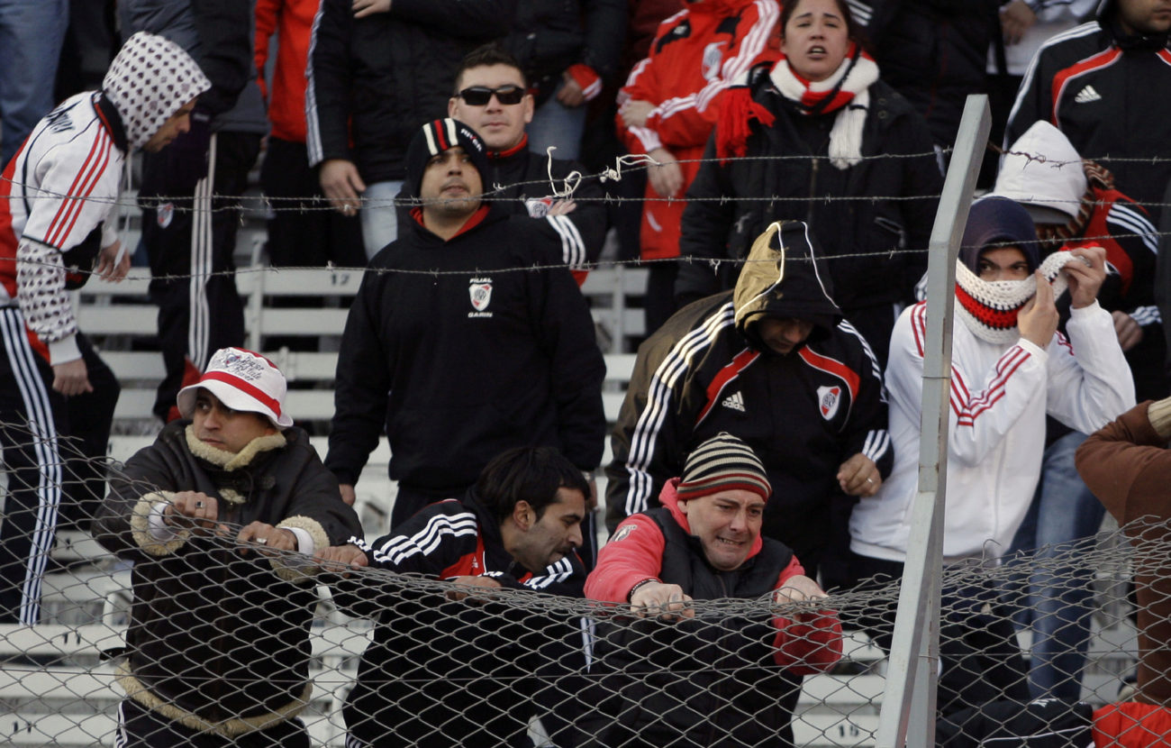El árbitro Sergio Pezzotta, amenazado de muerte en el entretiempo por los «Borrachos del Tablón», terminó el partido unos minutos antes cuando el Monumental ya era la escenografía de un campo de guerra, con fuego en las tribunas y hombres abatidos sobre el césped.