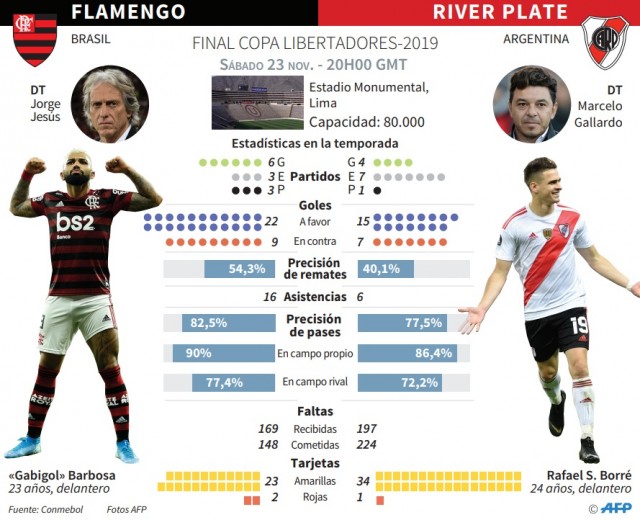 Ambos hicieron muy buenas campañas para llegar a la final de la Libertadores, que definirán en Lima desde las 17. El equipo brasileño fue más regular y sumó jugadores importantes, mientras que los dirigidos por Marcelo Gallardo son los últimos campeones y dieron cuenta de su archirival en semifinales, como lo hicieron la definición del año pasado.