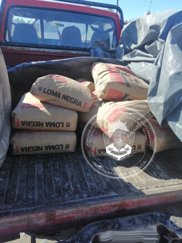 Un vecino vio cuando dos hombres se llevaban, en una camioneta roja, 14 bolsas de cemento de una obra en construcción en el loteo Perticone de Centenario. Enseguida alertó a la Comisaría Quinta y comenzaron a buscar el vehículo en el que huyeron. Lograron ubicarlos en calle Traful y, tras seguirlos algunas cuadras, pudieron detenerlos sobre Canadá.