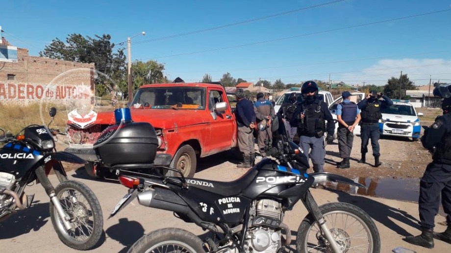 Un vecino vio cuando dos hombres se llevaban, en una camioneta roja, 14 bolsas de cemento de una obra en construcción en el loteo Perticone de Centenario. Enseguida alertó a la Comisaría Quinta y comenzaron a buscar el vehículo en el que huyeron. Lograron ubicarlos en calle Traful y, tras seguirlos algunas cuadras, pudieron detenerlos sobre Canadá.