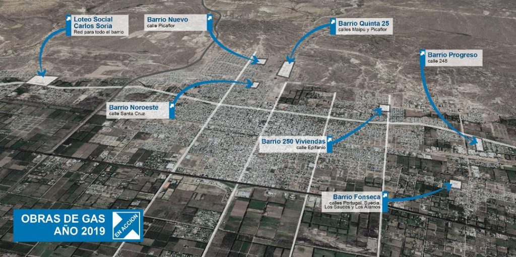 El Municipio de Roca informó que comenzó a ejecutarse el plan de obras de gas previstas para el inicio del 2019, respecto a la extensión de redes de gas natural en cinco barrios de la ciudad.
