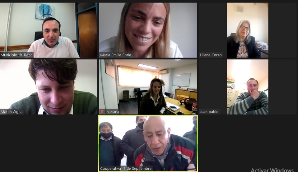 Luego de la firma, los miembros de la Cooperativa 1º de Mayo mantuvieron una reunión virtual con el director de Fomento de Proyectos Cooperativos y Mutuales del Instituto, Martín Cigna, la coordinadora Territorial del Inaes, Liliana Corzo y la intendenta María Emilia Soria.