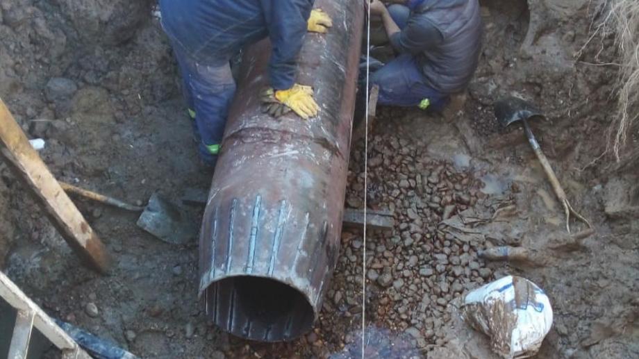 Pasadas las 10, llegó la pieza clave para reparar el ducto y empezar a normalizar el servicio de agua. Aún no la colocaron porque precisa unos ajustes, según informaron. Se estima que unas horas más el servicio podría estar normalizado.