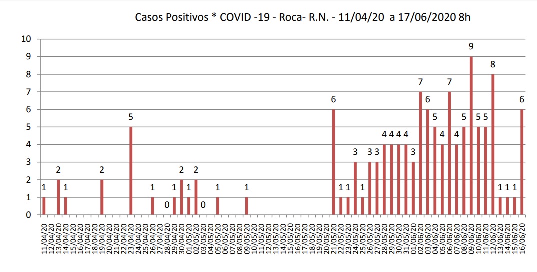 En el apartado específico relacionado con Roca, ese documento contiene un gráfico sobre la evolución de los casos confirmados en la ciudad desde el inicio de la pandemia y para el período comprendido por el 13, 14 y 15 de junio sólo se consigna un nuevo contagio por día.