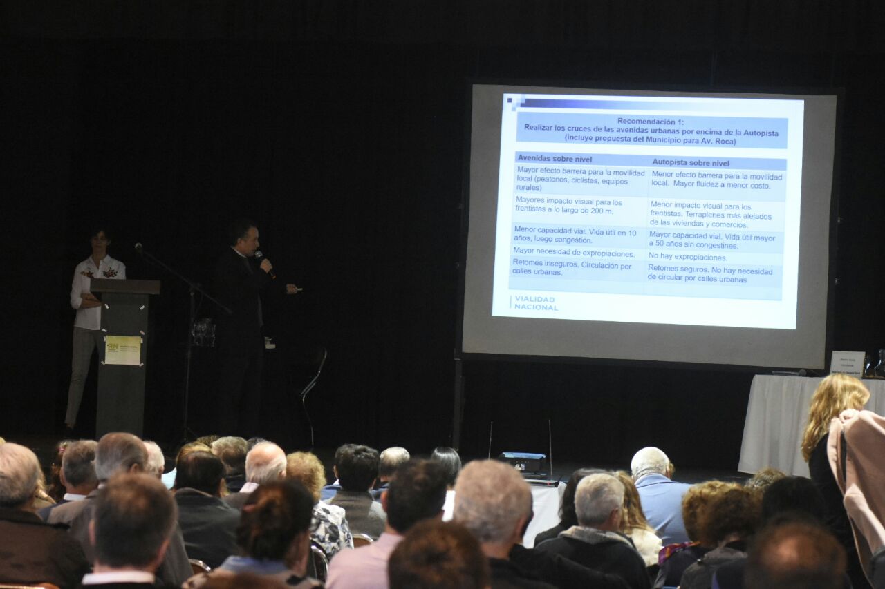 Marcelo Somenson, de Vialidad Nacional, desarrolló las recomendaciones que integran la propuesta de mitigación después del estudio de impacto ambiental. “Hicimos censos de transito en Roca; de giros. Lo cual no es habitual que hagamos”, destacó, agregando que “en otras localidades se plantean uno o dos cruces como mucho; acá damos tres o cuatro”.