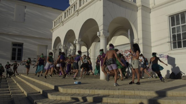 El hecho que terminó con la Catedral cubierta de pintadas fue el momento más tenso de la marcha que ayer recorrió las principales calles de la ciudad. Fue allí donde en medio de una intervención en la que escracharon las puertas de la institución, algunos integrantes de la comunidad católica salieron del edificio y se cruzaron con las manifestantes