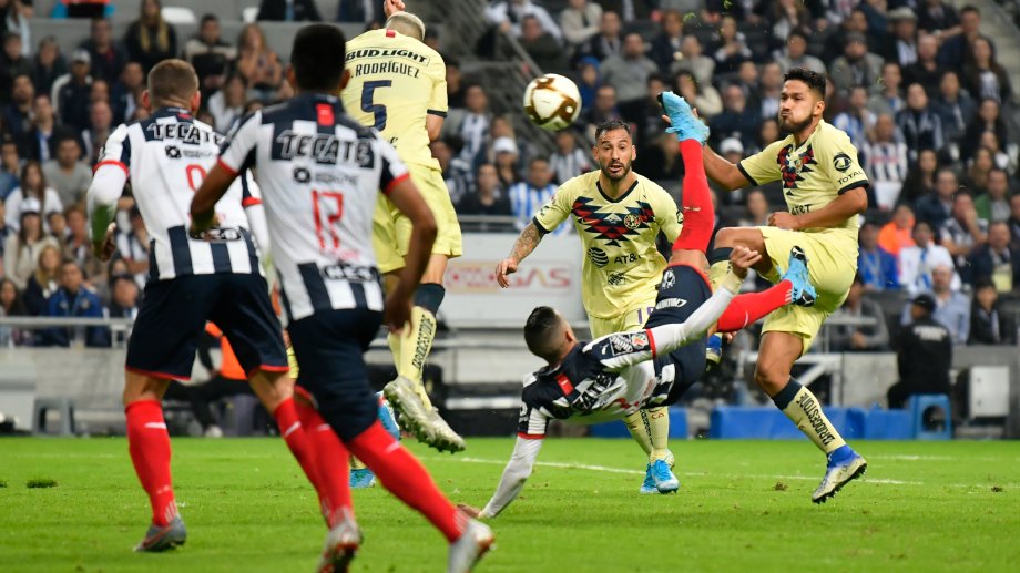El delantero ex River le dio el agónico triunfo al Rayados ante el América con una acrobacia espectacular. Los de Monterrey sacaron ventaja en la final de ida del Apertura de la liga mexicana.