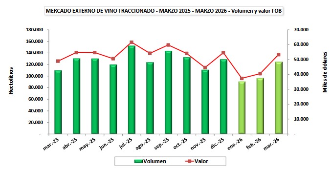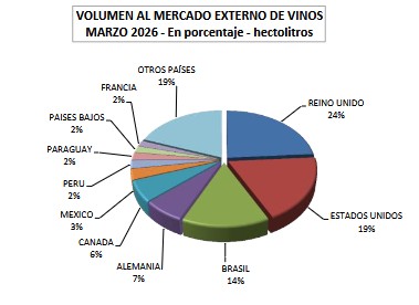La tendencia favorable de marzo refuerza los números del acumulado anual. Durante el período enero-marzo de 2026, las exportaciones totales de vino alcanzaron los 47.465.400 litros lo que representa un crecimiento del 15,5% respecto a los primeros tres meses de 2025.