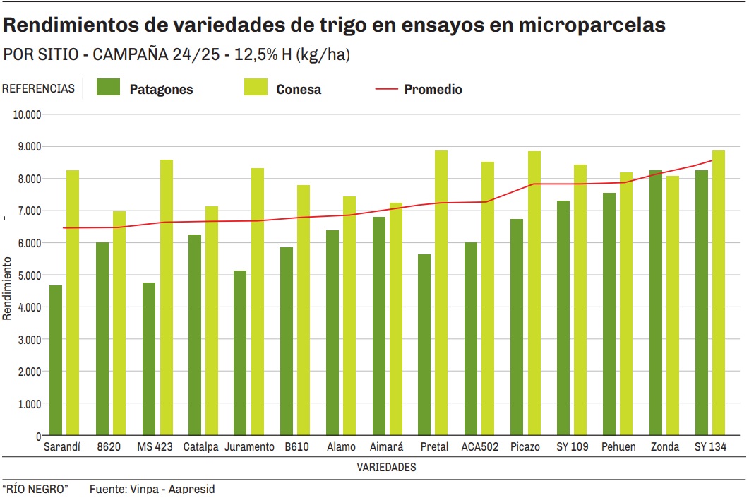 Rindes de trigo en Norpatagonia, variedad por variedad