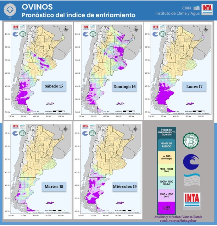 En esta oportunidad presentó un nuevo informe semanal sobre precipitaciones, temperaturas máximas y mínimas y pronóstico del índice enfriamiento para ovinos.