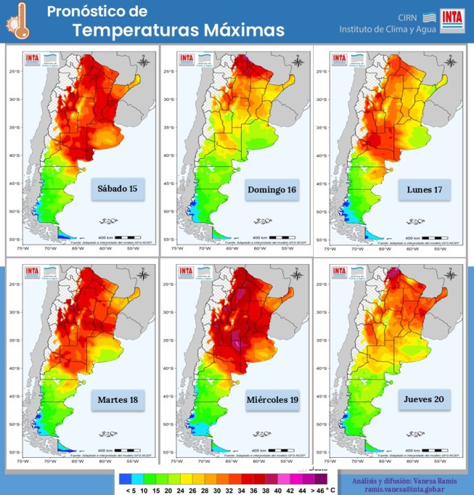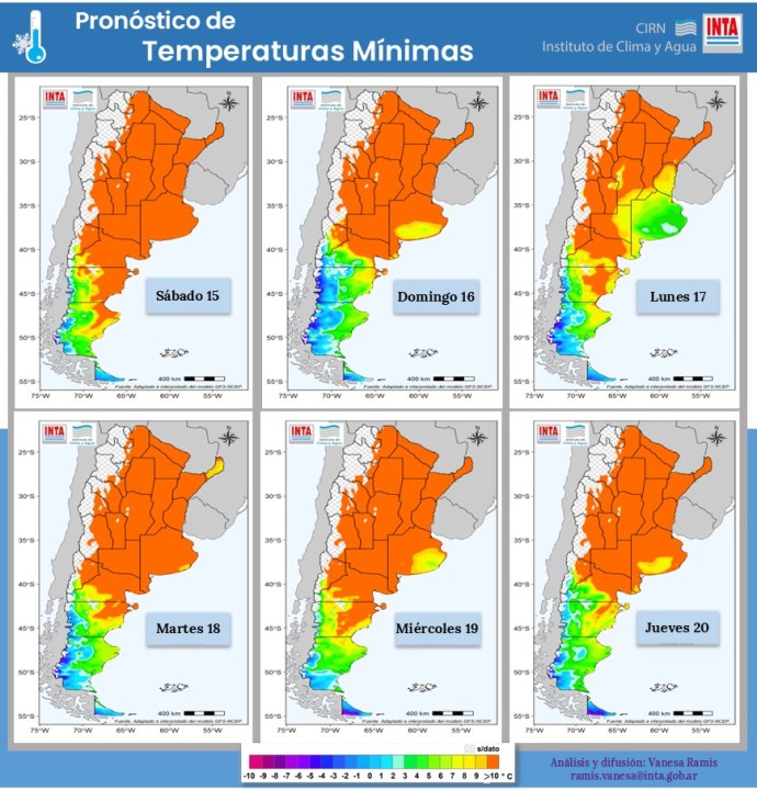 Pronóstico semanal elaborado por INTA Clima y Agua que anticipa las precipitaciones por región, y las temperaturas máximas y mínimas previstas en el país.