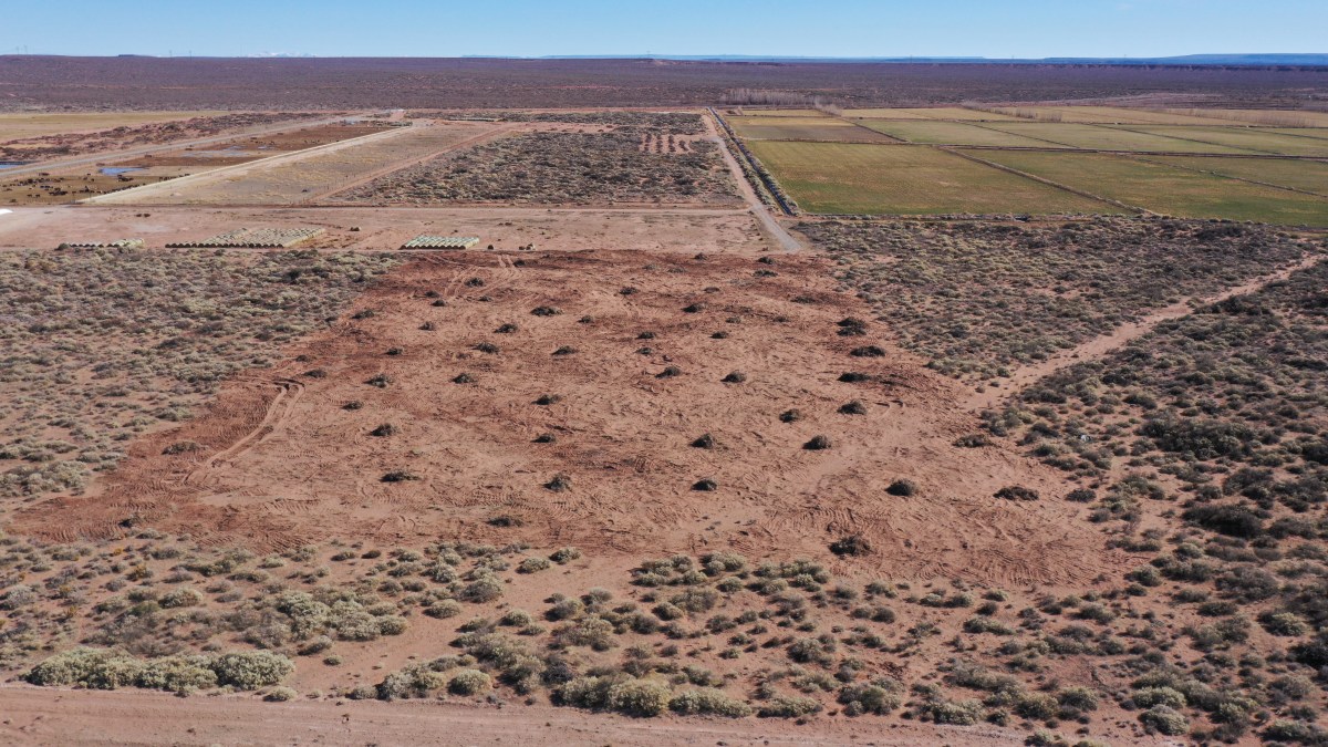 Esa transformación ya está en marcha, según explicaron. Actualmente se está trabajando en el movimiento de suelos de las primeras 400 hectáreas de ese cultivo. El campo, ubicado algunos kilómetros al sur de Picún Leufú, presenta la típica vegetación arbustiva de la estepa neuquina, motivo por el cual la tarea de desmonte y nivelación representa un desafío de envergadura.