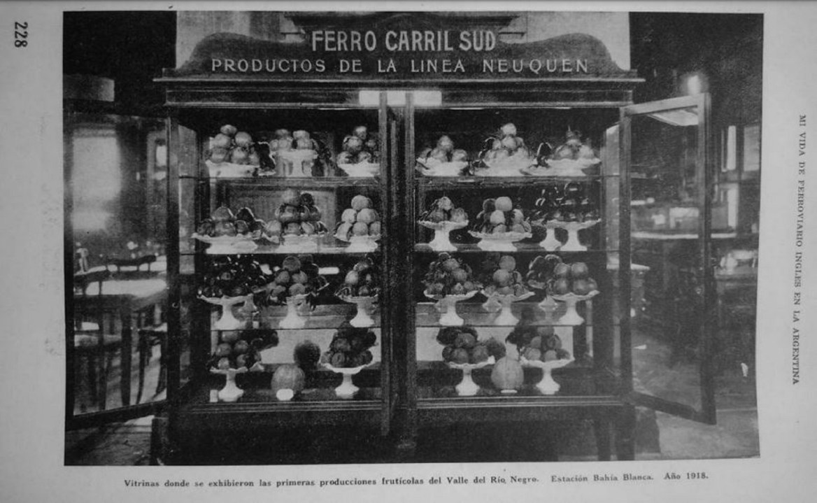 Ya desde principios del 1900, la belleza de los frutos salidos de la Norpatagonia se lucía en la Estación de tren de Bahía Blanca, idea que luego replicaron en Constitución. El libro “Mi vida de ferroviario”, de Arturo Coleman, recuerda el origen de esa iniciativa ya que “por más que la producción ganadera, mineral y frutícola del Alto Valle del río Negro y del Territorio Nacional del Neuquén eran importantísimas, muchísimas personas, ignoraban sus verdaderos alcances y posiblidades” en el centro del país, explicó el autor en 1948.